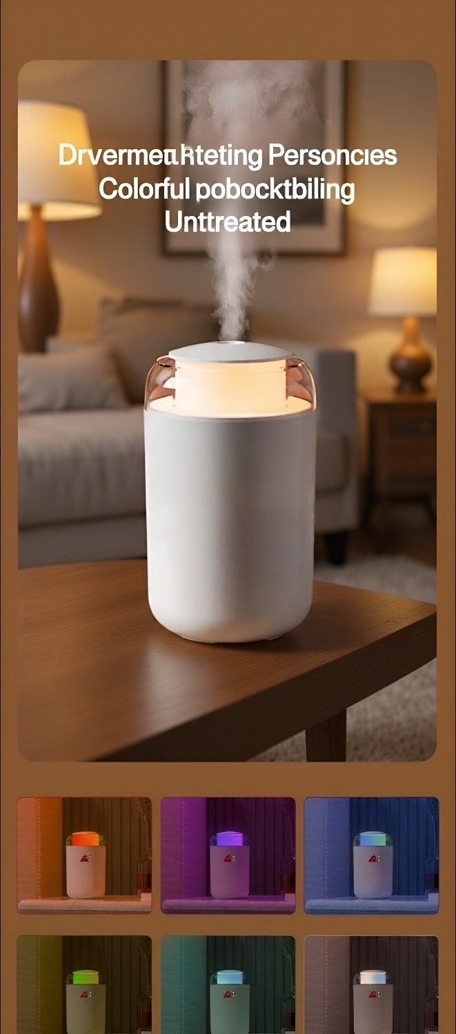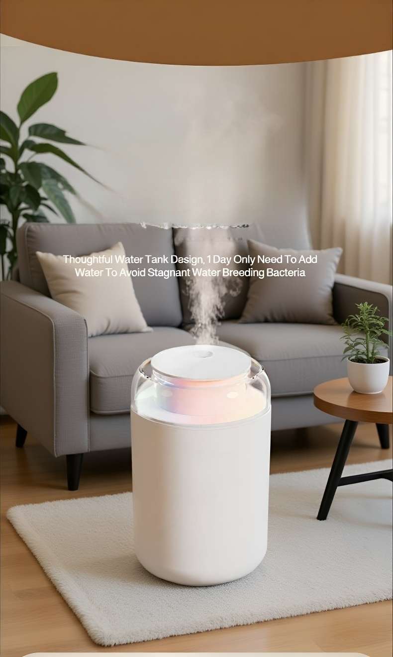 ● Portable and wireless, this desktop humidifier offers hassle-free placement anywhere, making it perfect for bedrooms, workspaces, or travel.