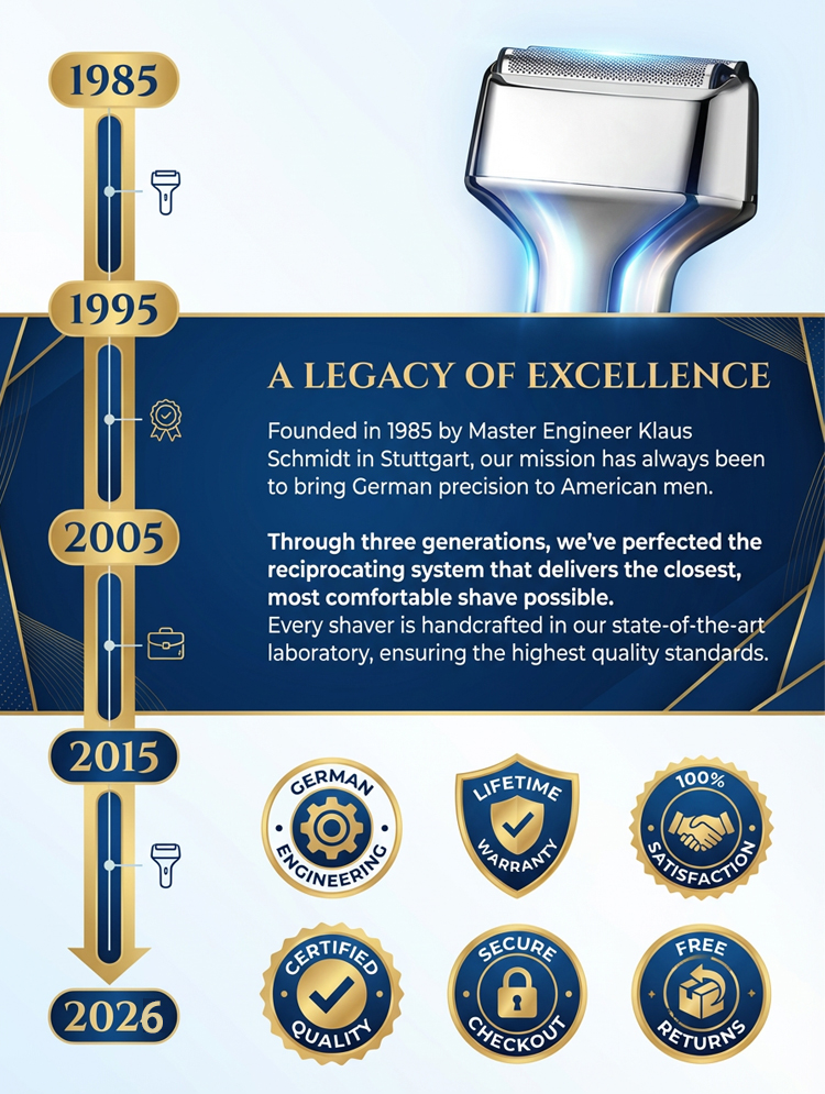 harge it once andget an incredible 100 days of battery life—that means you might only need to charge it 3 times a year! 🔋⚡️ It supports both wet and dry shaving, and its IPX7 waterproof rating means you can use it in the shower and rinse it directly under the tap. 🚿 We've bypassed all the expensive big-brand marketing to bring it directly to you at a factory price. 🏭💰 Initial stock is limited. Order now to enjoy our exclusive launch discount! Your purchase is backed by our no-questions-asked return guarantee for a zero-risk experience of this German-engineered shaving revolution! 🇩🇪🛡️