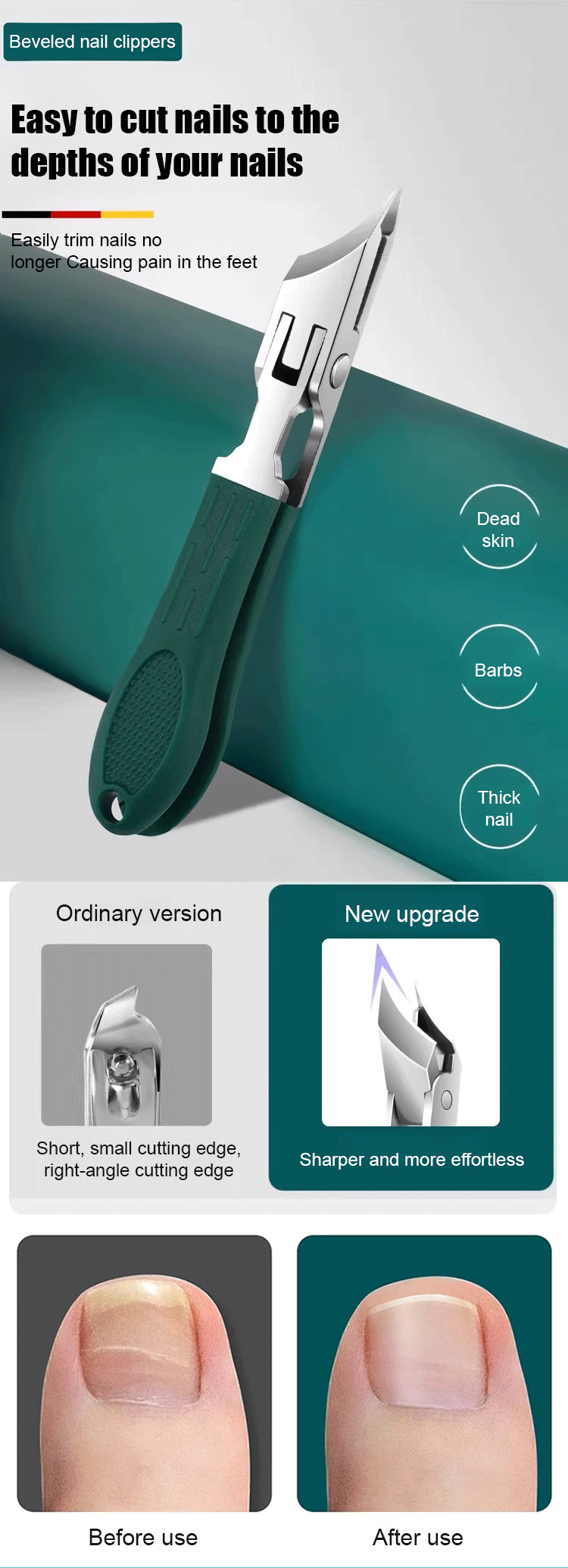 Relieve Ingrown Pain Instantly 🦶 25° Precision Slant Blade Clipper for Thick & Deep Toenails - Cut Like Butter! ✂️
